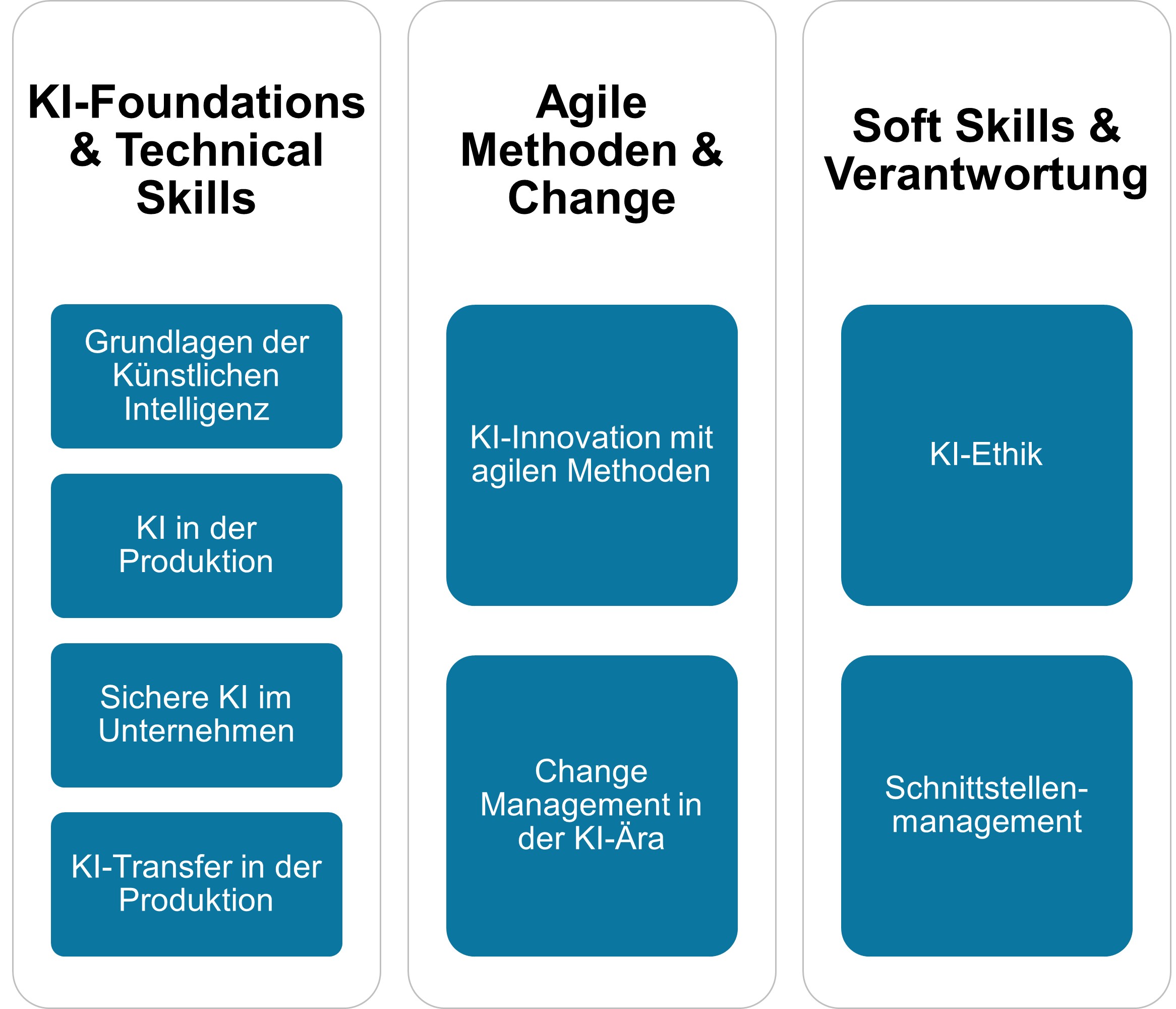 KI-gestützte Produktion ist längst Realität – doch technisches Wissen allein reicht nicht. Wer KI erfolgreich einsetzen will, braucht fundierte Anwenderqualifikationen, agile Methoden und die Fähigkeit, Menschen durch Veränderung zu führen.